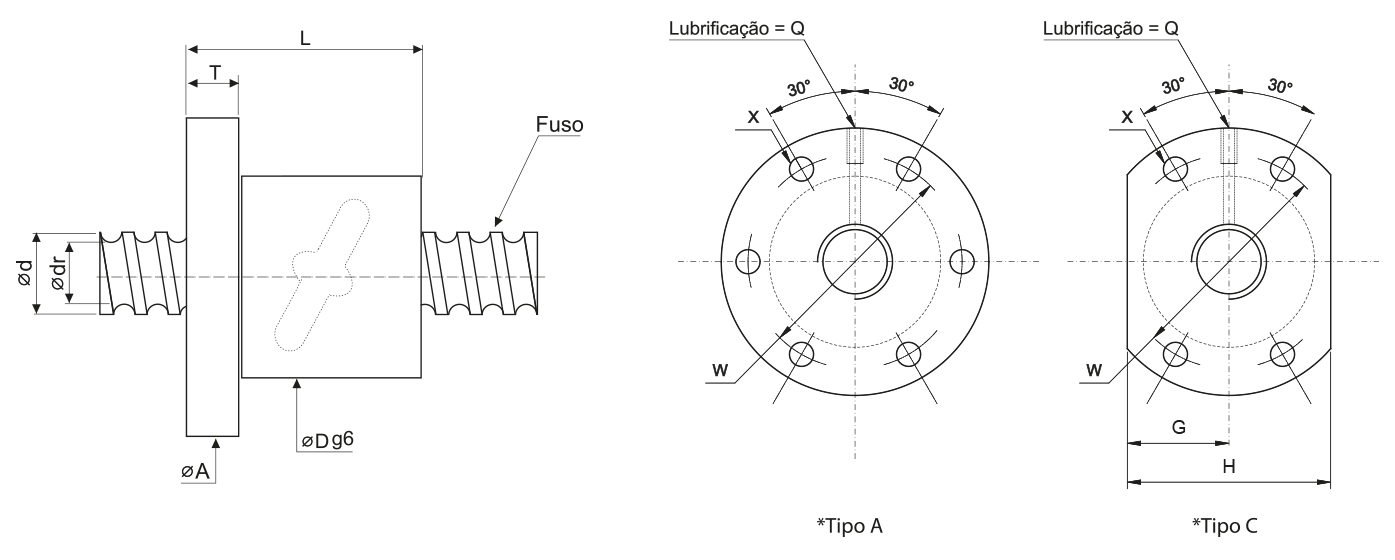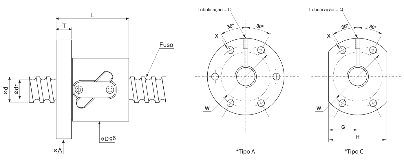 Dimensões da Porca | Fuso | ||||||||||