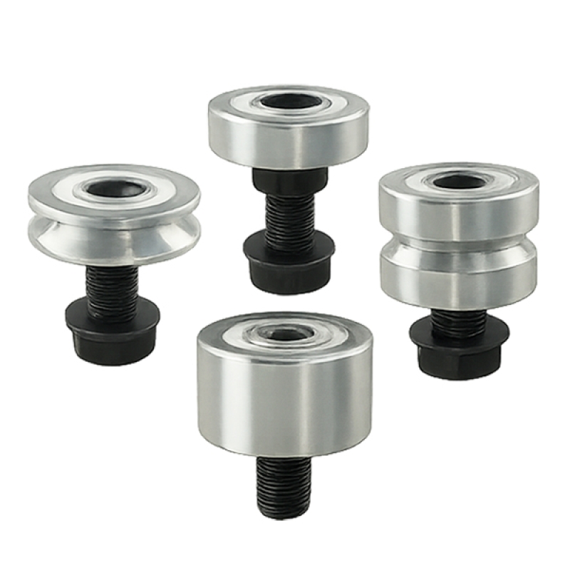 Fixação Passante: Está disponível em dois comprimentos de eixo, sendo que a versão de eixo curto é compatível com as Placas de Carro padrão. Ambas as versões estão disponíveis como tipo Concêntrico (C), de posição fixa; tipo Excêntrico (E), ajustável; e tipo Duplo Excêntrico (DE), que permite que um Carro Removível seja desacoplado de um Trilho.