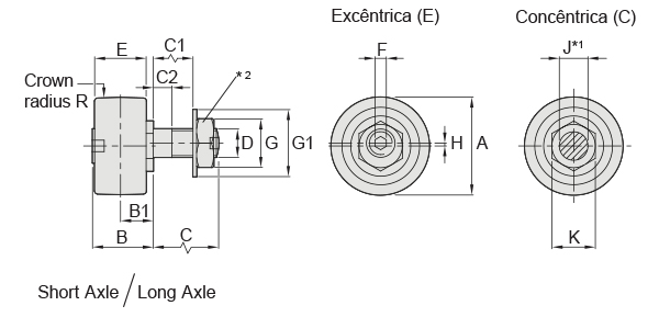 Os rolos são compostos por um rolamento de esferas de alta capacidade, de duas carreiras, tipo ranhura profunda, com um anel externo de seção robusta e perfil abaulado.