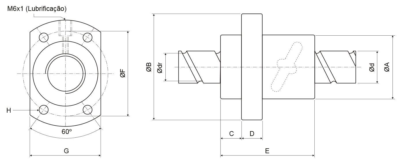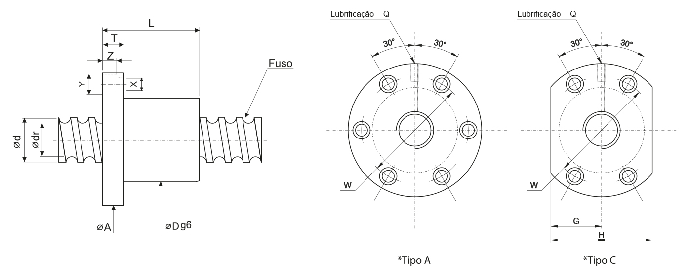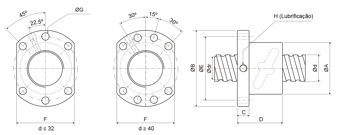 Dimensões da Porca | Fuso | ||||||||||