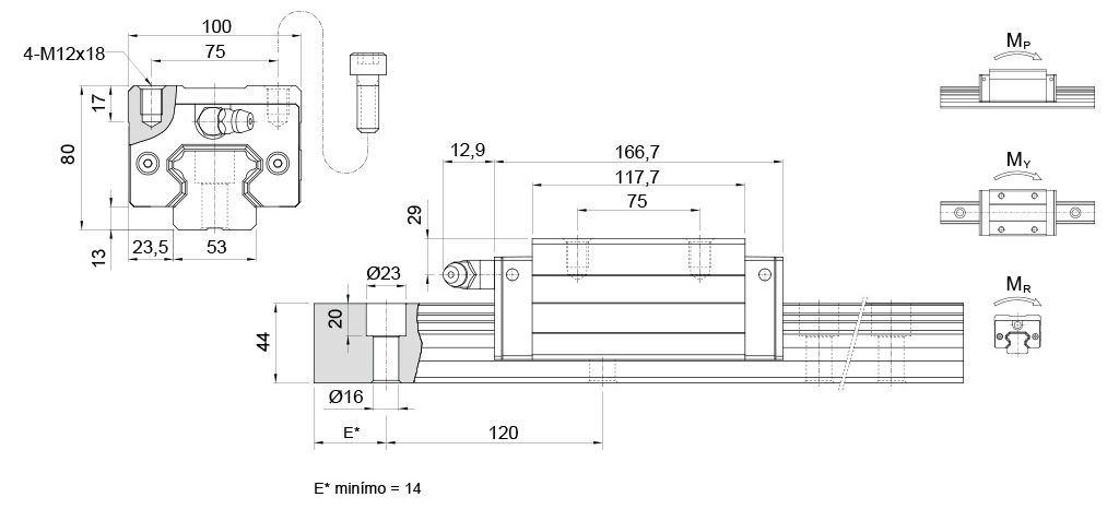 Dinâmica (kgf) Estática (kgf) MP (kgf.m) MY (kgf.m) MR (kgf.m) Carro kg Guia kg/m